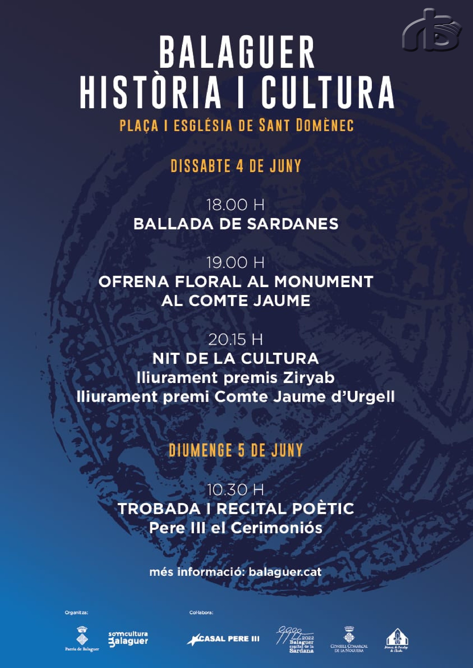 Balaguer celebra aquest dissabte la primera Nit de la Cultura, en què es farà entrega del XXXIII Premi Premi Jaume Comte d'Urgell i dels Premis Ziryab Ciutat de Balaguer i del Premi d'Honor Cultura Balaguer 2022, un premis a la trajectòria cultural