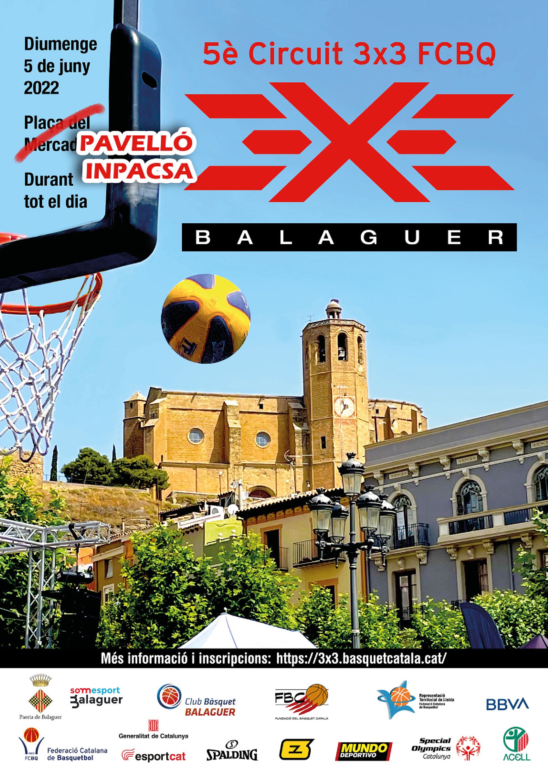 L'organització del Circuit 3x3 de bàsquet desplaça l'activitat que s'havia de fer aquest diumenge a la plaça Mercadal de Balaguer a les pistes del pavelló Inpacsa. La decisió s'ha pres, entre altres, per evitar la calor que apunta la previsió meteorològic