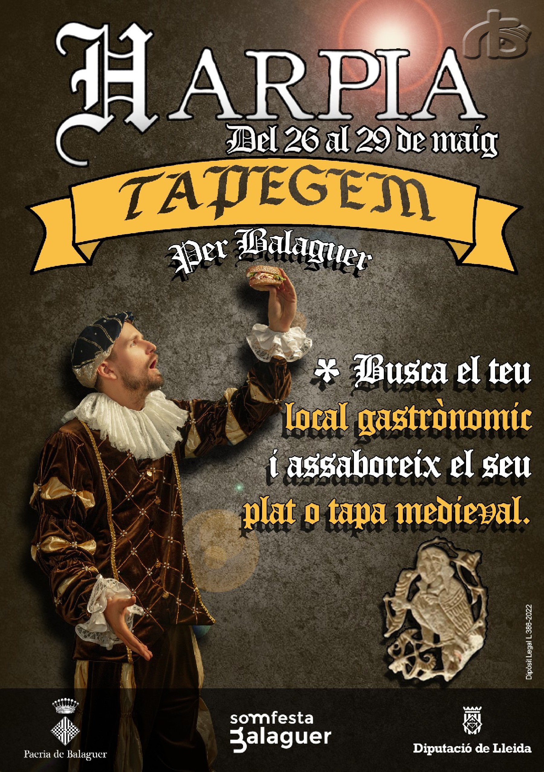A partir del proper dijous i fins diumenge, una vintena de bars i restaurants de la ciutat participaran en la segona edició del Tapegem per Balaguer! en el marc de la festa de l'Harpia. Oferiran una tapa o un plat amb gust medieval
