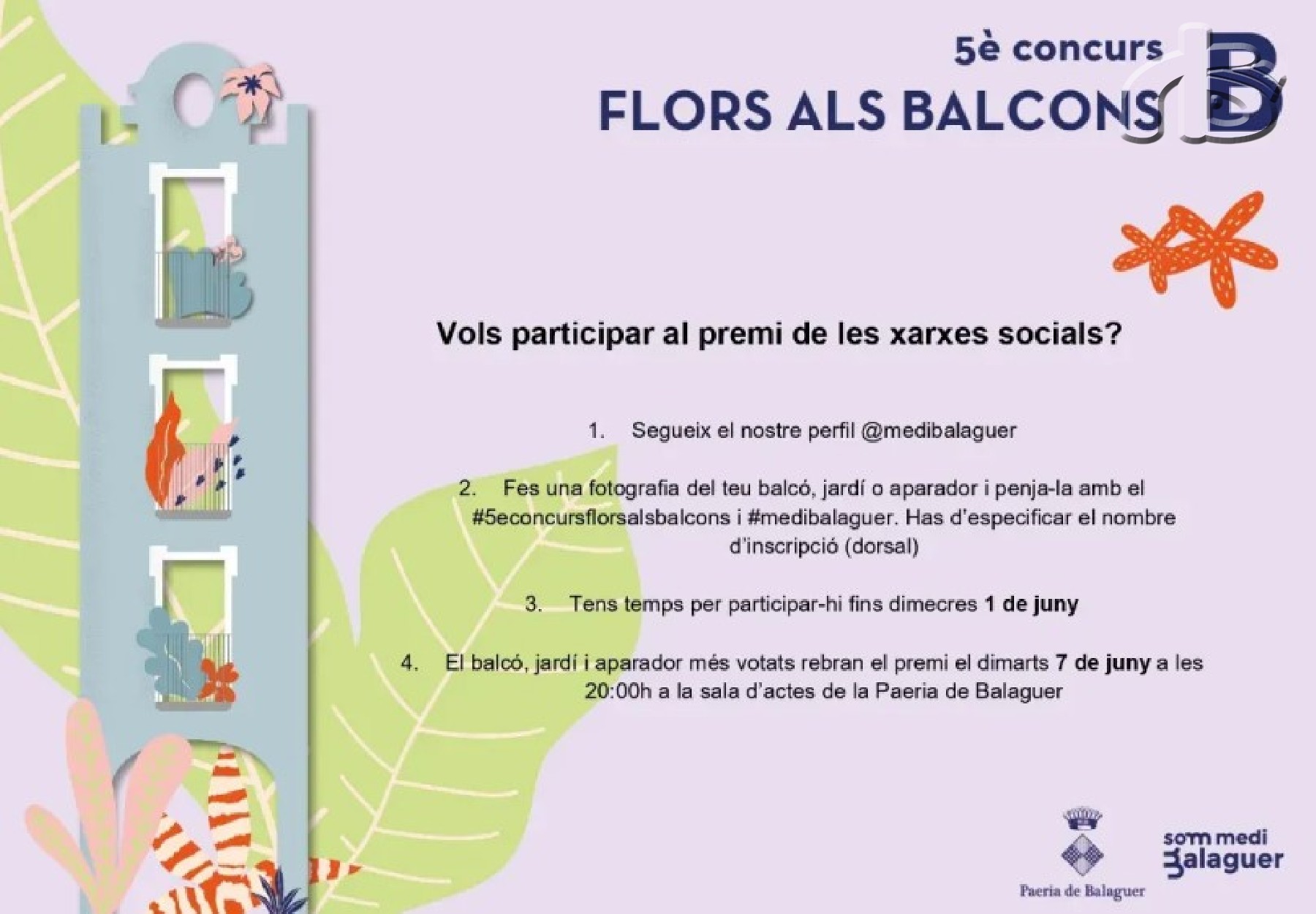 La Paeria de Balaguer posa en marxa el 5è Concurs de fotografia Flors als balcons a la xarxa Instagram. Hi poden participar les persones que pengin a Instagram una fotografia de les flors o plantes que tenen al seu balcó, jardí o aparador