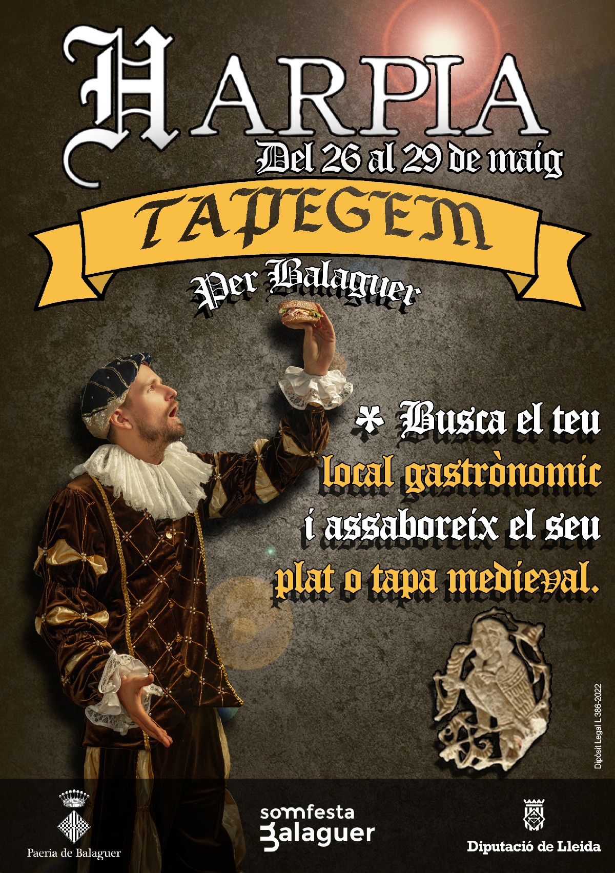 Balaguer celebrarà la segona edició del Tapegem ! en el marc de la festa de l'Harpia. Hi participaran una vintena de bars i restaurants que des del dijous 26 fins al 29 de maig oferiran una tapa o un plat amb gust medieval dins el seu mateix local