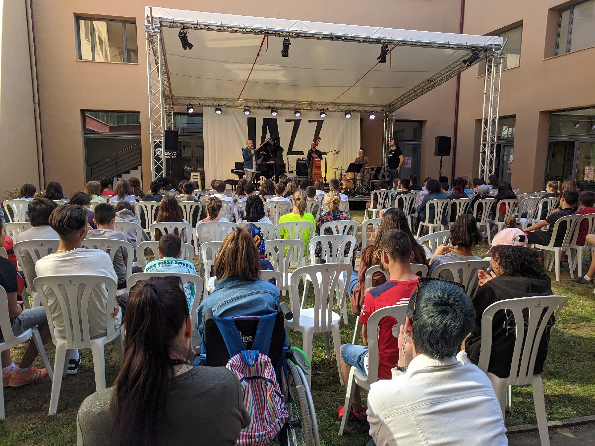 Amb les audicions matinals pedagògiques adreçades als alumnes de primer d'ESO de l'Escola Vedruna i l'Escola Pia de Balaguer ha començat aquest matí la 5ª edició de Jazz al Pati, la mostra internacional de joves intèrprets que se celebra fins diumenge
