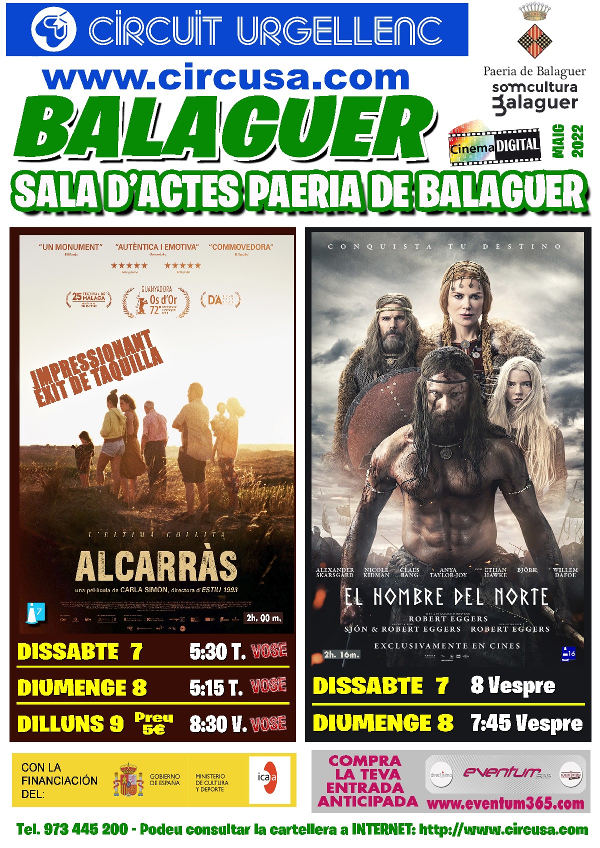 Al Cinema Balaguer continua la projecció de la pel·lícula ALCARRÀS, guanyadora de l'Os d'Or a la Berlinale, Dirigida per Carla Simón. I també es podrà veure EL HOMBRE DEL NORTE
