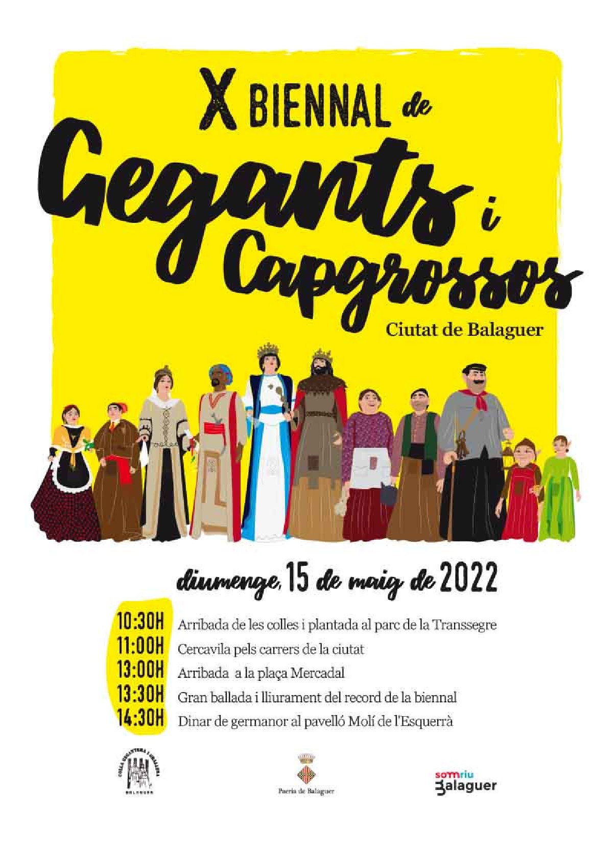 X Biennal de Gegants i Capgrossos 'Ciutat de Balaguer' diumenge 15 de maig de 2022. Aquest any els gegants de Balaguer faran una galop i ballaran una sardana en honor a la capitalitat de la sardana