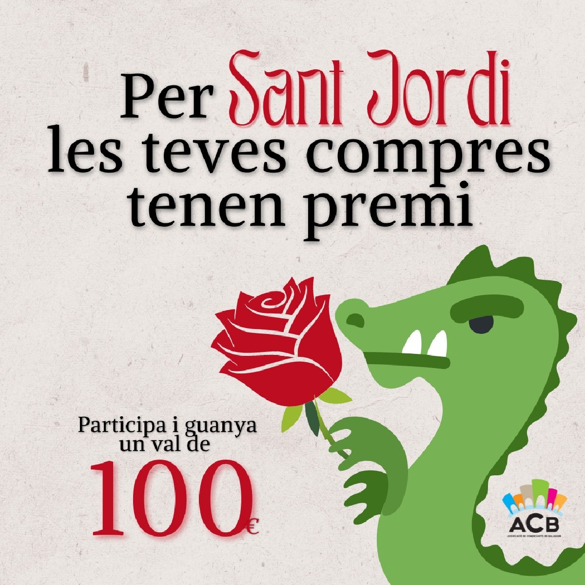 L'Associació de Comerciants de Balaguer sorteja entre els seus clients un val de 100 euros en compres. Per participar-hi cal fer una compra en un dels comerços associats la diada de Sant Jordi i seguir les instruccions a les xarxes socials