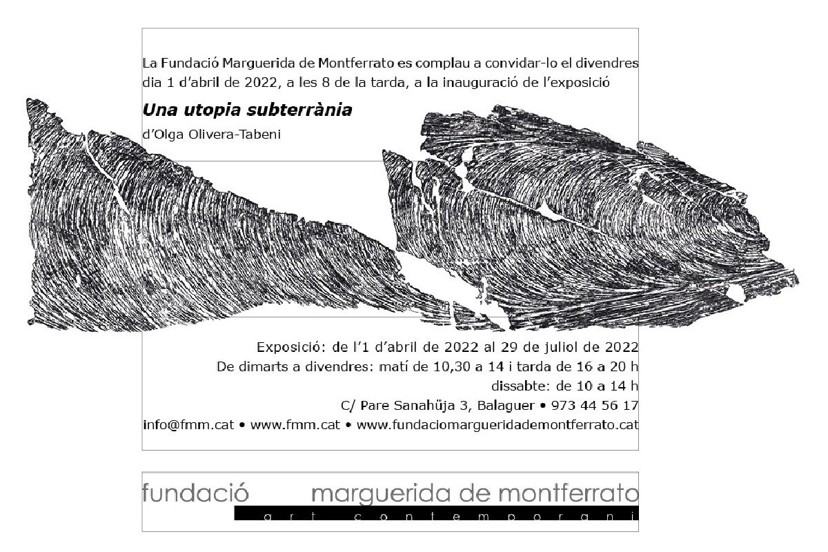 La Fundació Marguerida de Montferrato presenta aquest divendres 1 d'abril l'exposició 'Una utopia subterrània' d'Olga Olivera-Tabeni que estarà oberta fins a finals de juliol