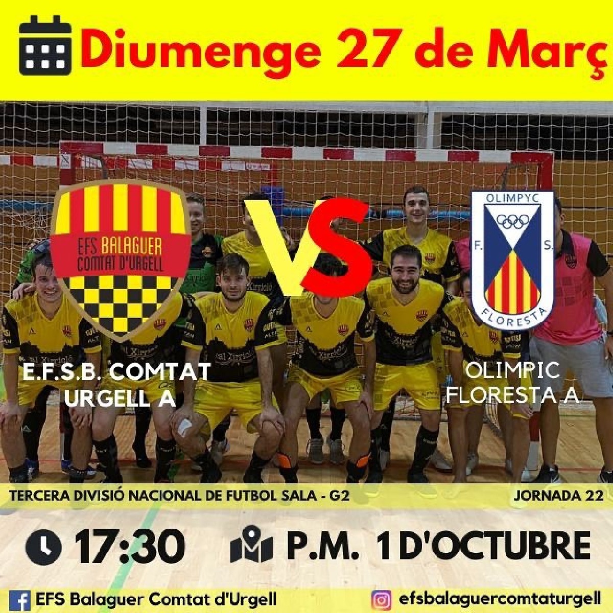 El Comtat d'Urgell de futbol sala rebrà diumenge a la tarda l'Olímpic Floresta, actual 6è classificat. Els de Balaguer necessiten puntuar però no serà un rival fàcil