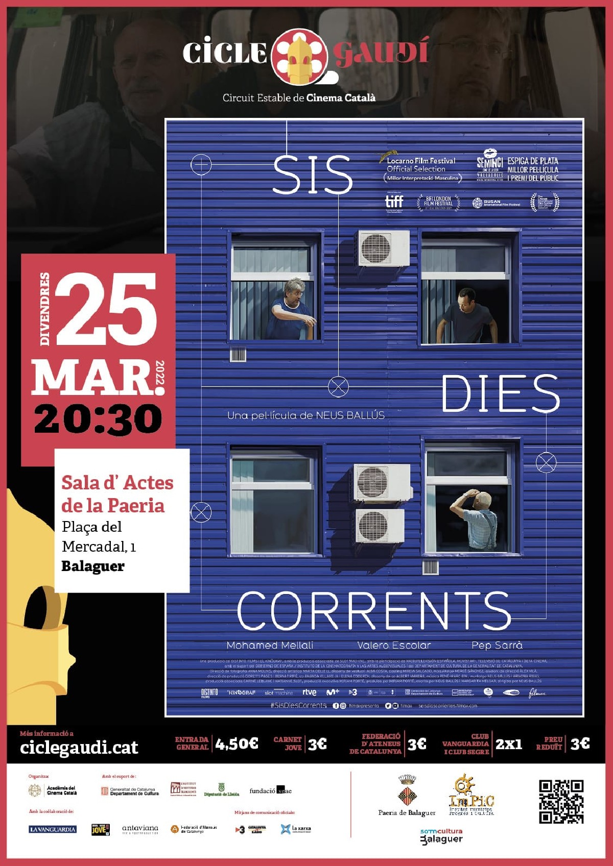 Continua el Cicle Gaudí de Cinema a Balaguer amb la projecció aquest divendres de la pel·lícula SIS DIES CORRENTS, dirigida per Neus Ballús