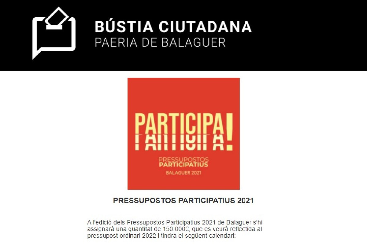 Aquest dissabte comença a Balaguer el període de votacions de la tercera edició dels pressupostos participatius. De les 90 propostes presentades per la ciutadania, la Paeria n'ha escollit un total de 20, que es podran votar fins al 3 d'abril