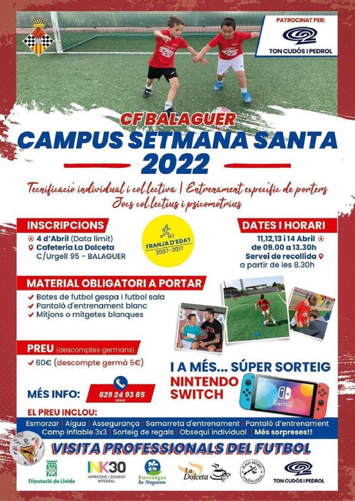 El Club Futbol Balaguer ja té en marxa el Campus de Setmana Santa. Un campus dirigit al futbol femení i masculí, sense cap necessitat d'estar vinculat al club per poder-hi participar