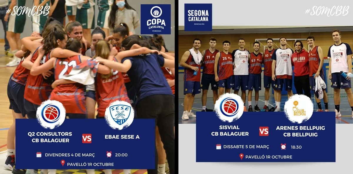Els primers equips del Club Bàsquet Balaguer disputen doble jornada aquest cap de setmana. El Q2 Consultors, juga divendres contra l'EBAE Sese i dissabte contra l'Hospitalet. El Sisvial, dissabte contra el Bellpuig i diumenge contra el Sant Cugat