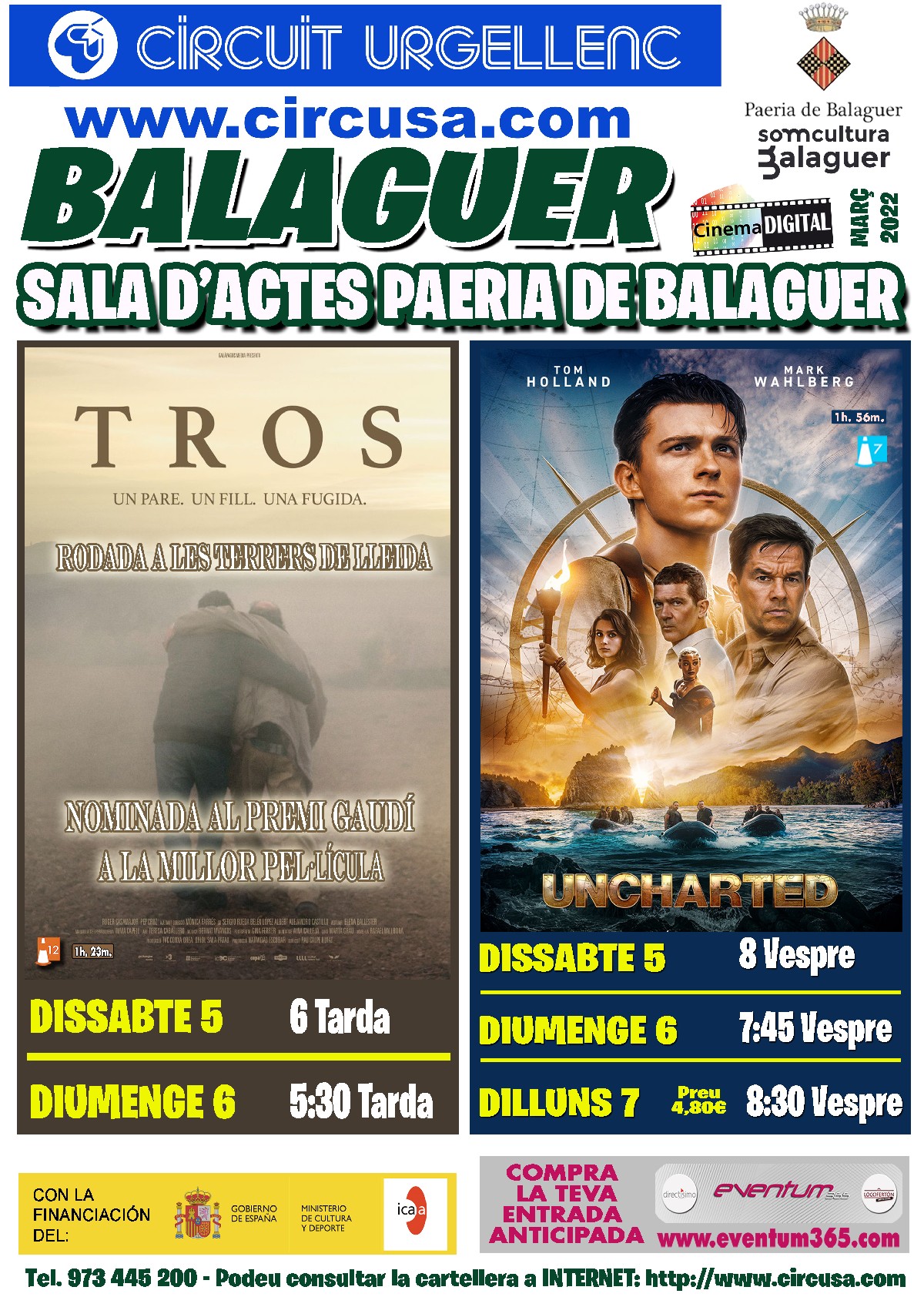 Aquest cap de setmana al Cinema Balaguer es podrà veure novament la pel·lícula TROS, dirigida per Pau Calpe. I també el film d'aventures UNCHARTED