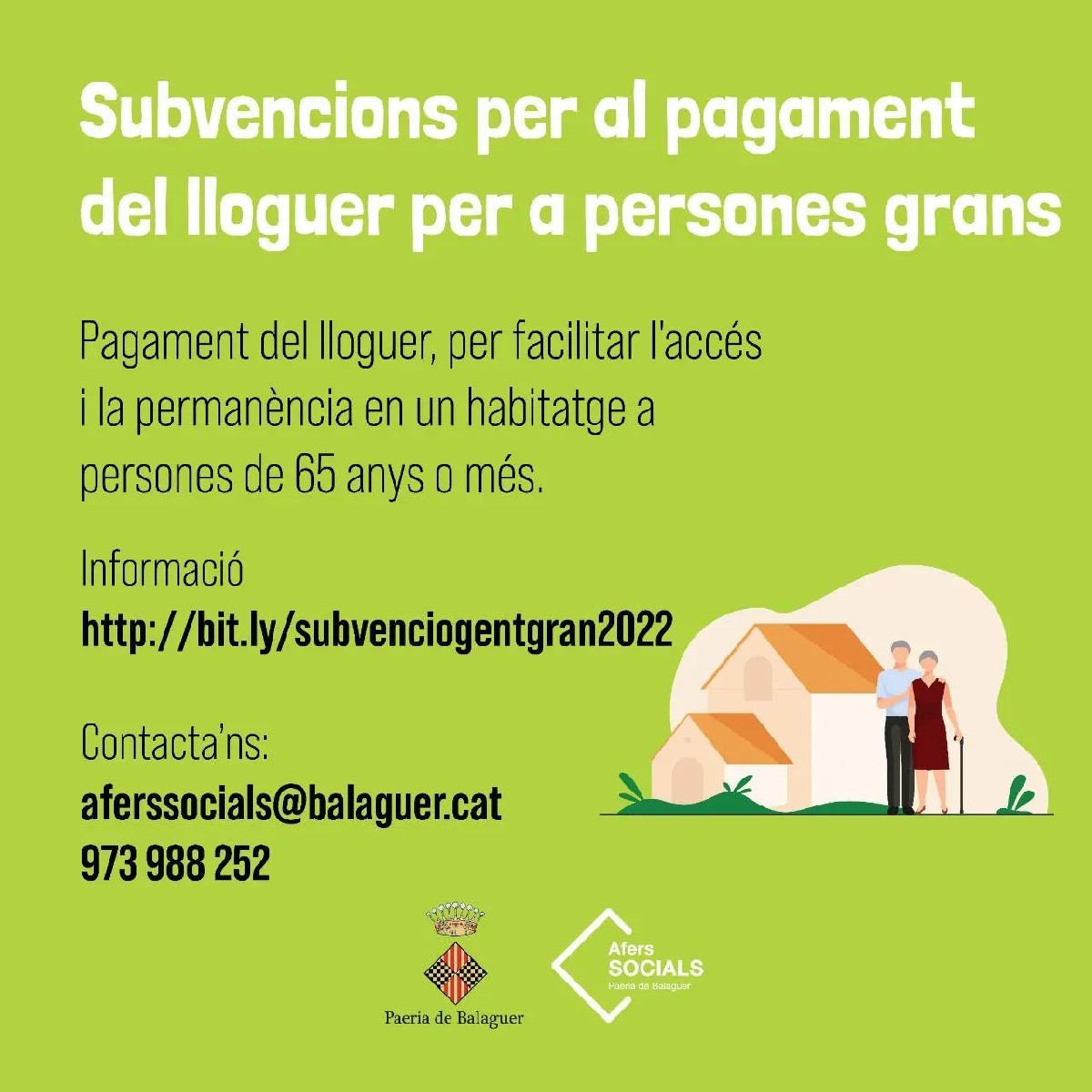 La Paeria de Balaguer informa que s'obre fins al 29 d'abril el termini per demanar les subvencions per al pagament del lloguer per a persones grans