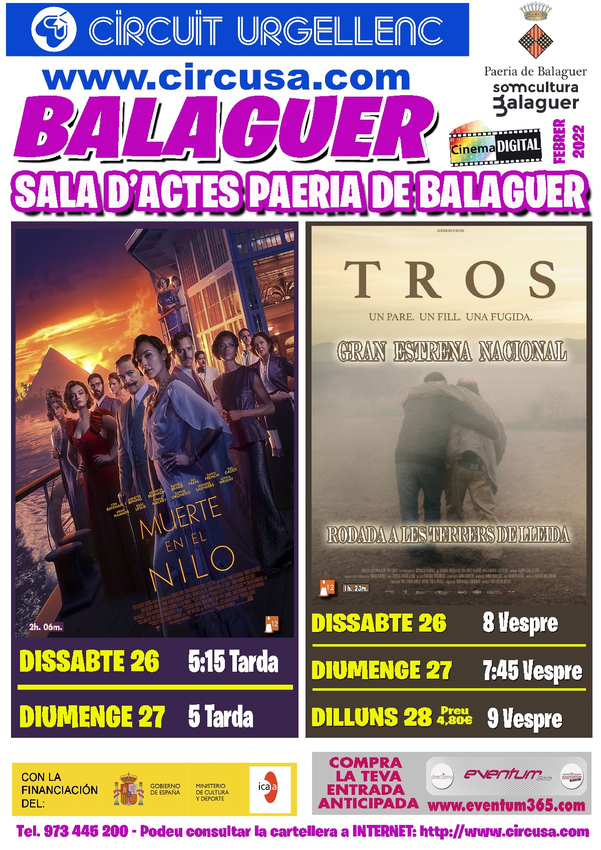 Aquest cap de setmana al Cinema Balaguer es podrà veure la gran estrena de la pel-licula TROS, dirigida per Pau Calpe. I també la pel·lícula MUERTE EN EL NILO