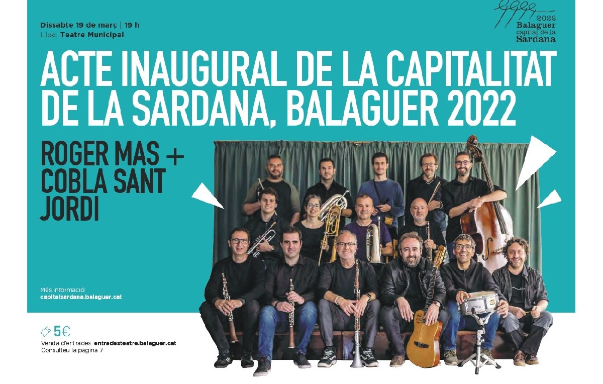 Ja s'han posat a la venda les entrades per al concert de Roger Mas i la Cobla Sant Jordi al Teatre Municipal de Balaguer. El concert es celebrarà el pròxim 19 de març i donarà el tret de sortida als actes de Balaguer Capital de la Sardana 2022