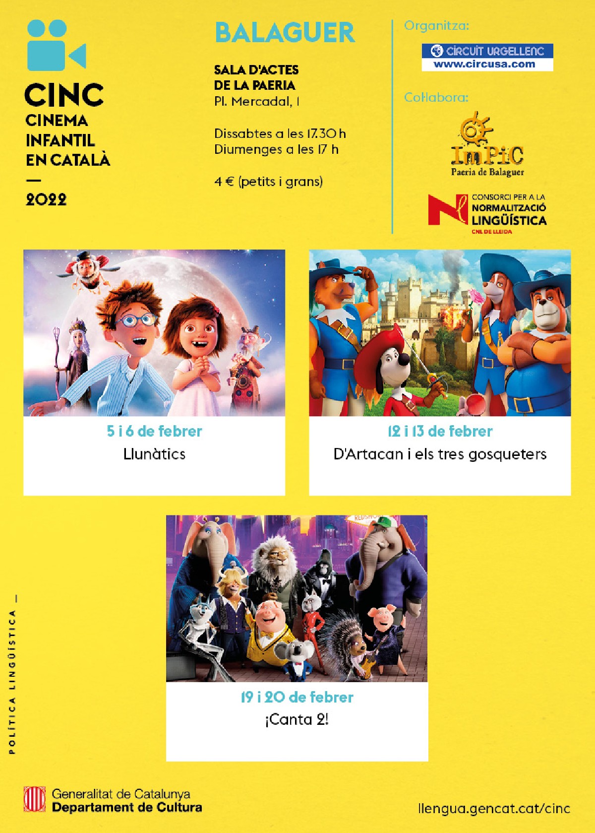 Torna el Cinc, el Cicle Infantil de Cinema en Català a Balaguer amb tres projeccions aquest mes de febrer