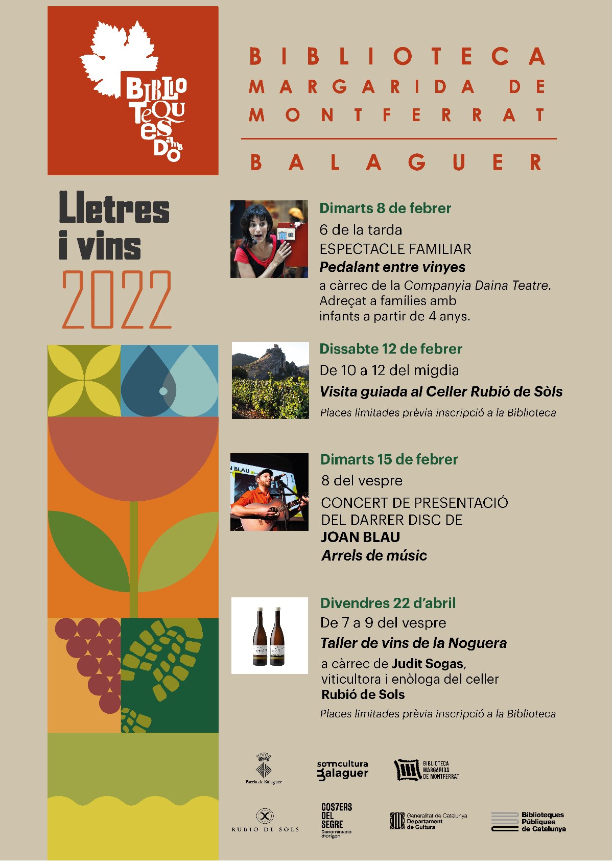 La Biblioteca Margarida de Montferrat de Balaguer s'adhereix per setè any consecutiu al Projecte Biblioteques amb DO, una iniciativa del Servei de Biblioteques del Departament de Cultura, que porta la cultura del vi a les biblioteques públiques