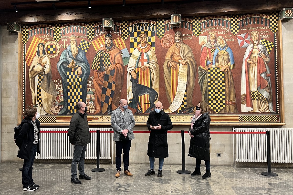 Aquesta tarda s'ha inaugurat la restauració del mural del vestíbul de la casa de la Paeria. Es tracta del mural dels Comtes d'Urgell obra de Jaume Minguell
