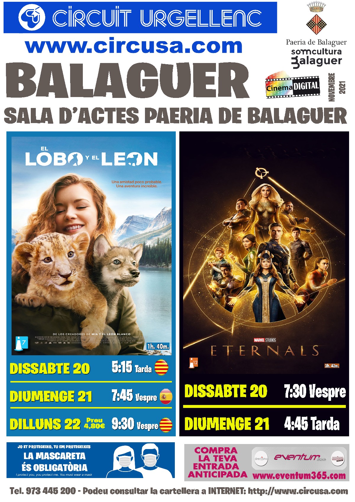 Aquest cap de setmana al Cinema Balaguer es podran veure les pel·lícules EL LLOP I EL LLEÓ I ETERNALS