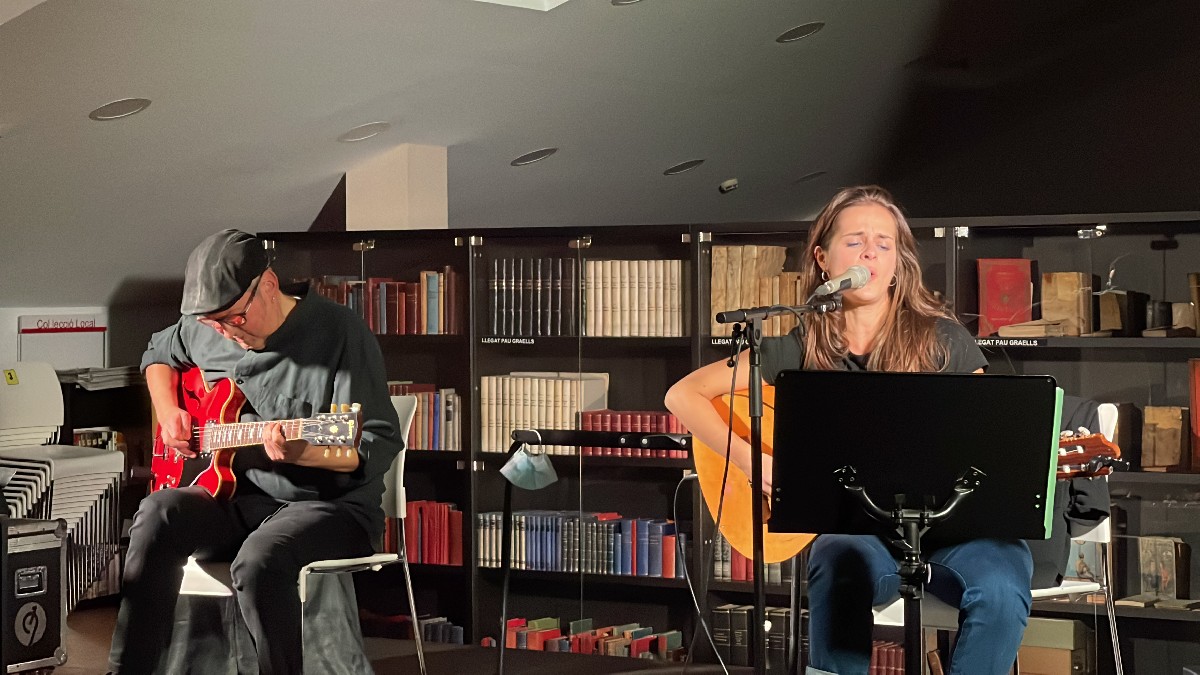 Aquest divendres la Biblioteca Margarida de Montferrat ha estat escenari de l'espectacle 'Sastres insomnes' a càrrec de Meritxell Gené, en homenatge a Joan Barceló