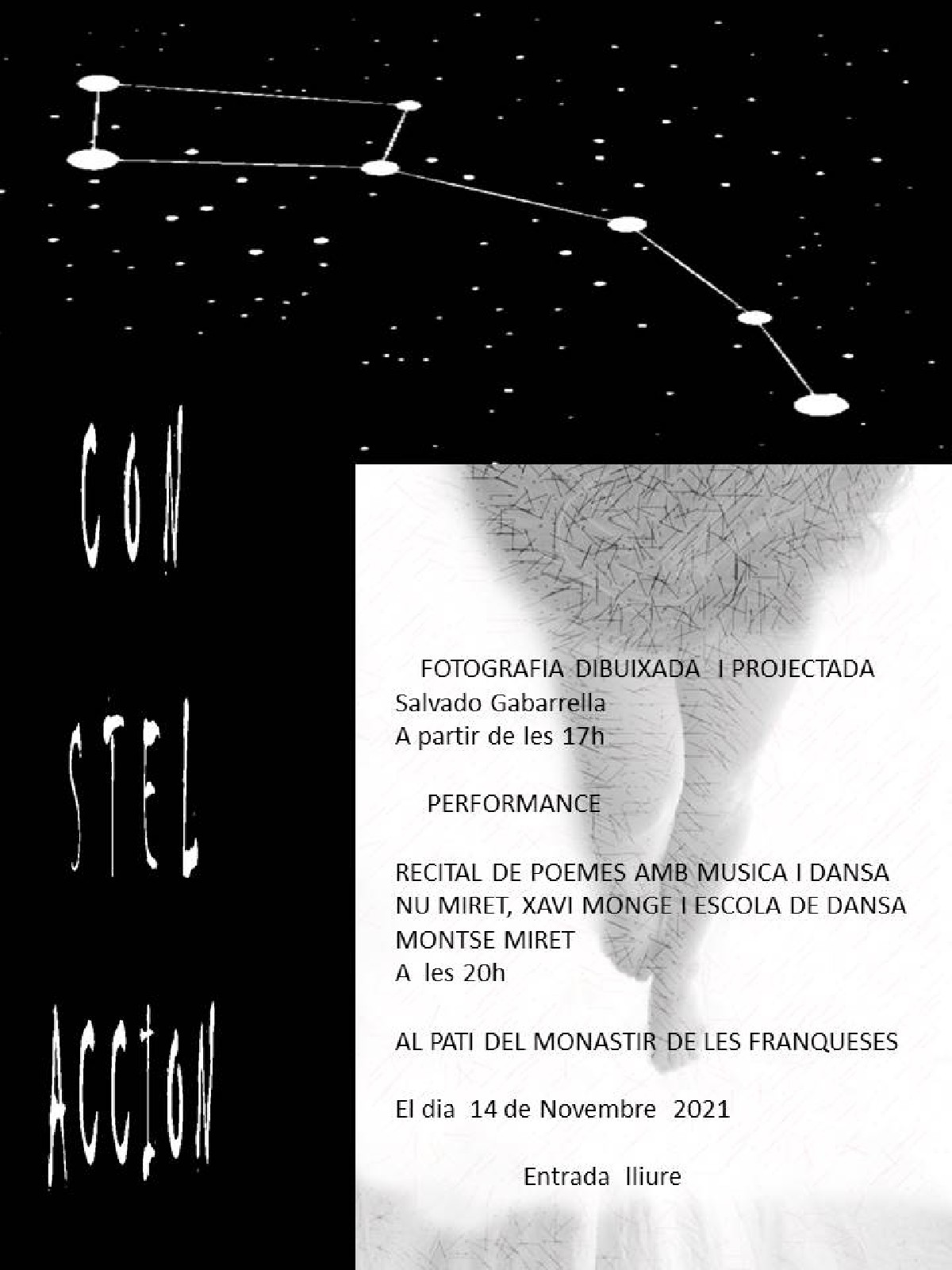 Aquest diumenge es farà al Monestir de les Franqueses la performance CON STEL ACCION, un producció del Balaguerí Salvador Gabarrella amb la col-laboració de Nu Miret, Xavi Monge i l'Escola de Dansa Montse Miret