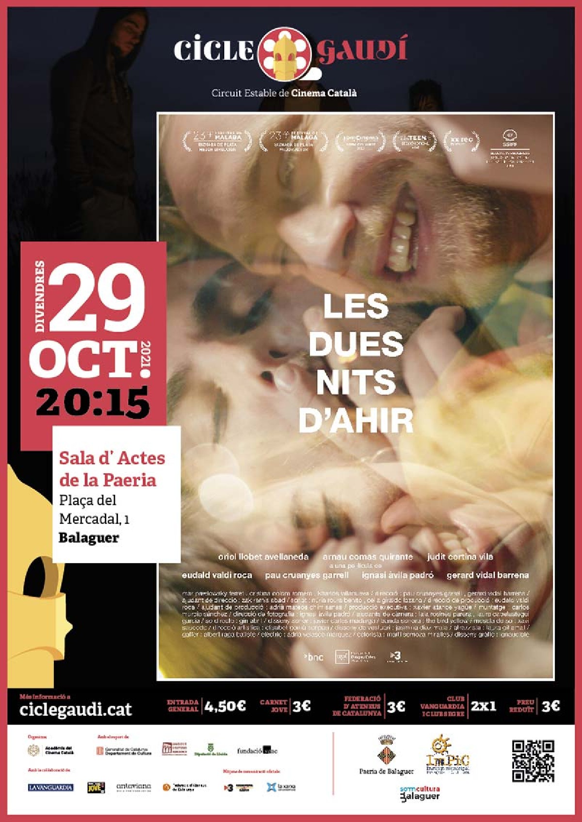 Divendres dia 29 d'octubre torna el Cicle Gaudí de Cinema amb la projecció de la pel-lícula, Les dues nits d'ahir, dir. Gerard Vidal i Pau Cruanyes