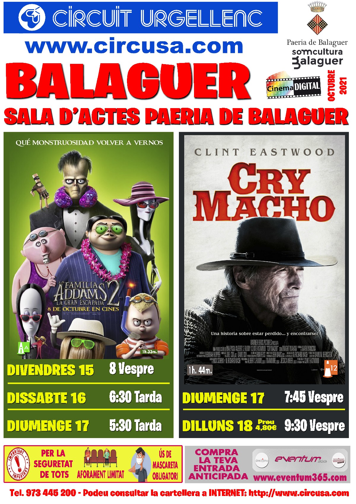 Arriba al Cinema Balaguer la pel·lícula d'animació LA FAMILIA ADDAMS 2 LA GRAN ESCAPADA, i també CRY MACHO, amb Clint Eastwood