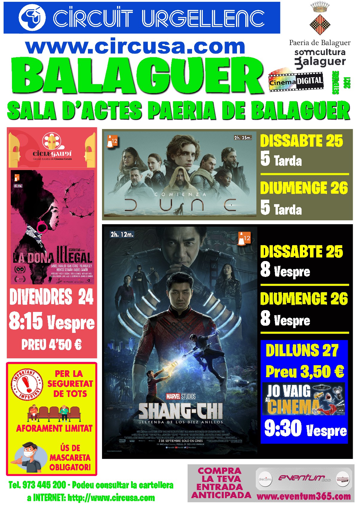 Arriba al Cinema Balaguer el film SHANG-CHI Y LA LEYENDA DE LOS DIEZ ANILLOS, i per segon cap de setmana també la pel·lícula DUNE