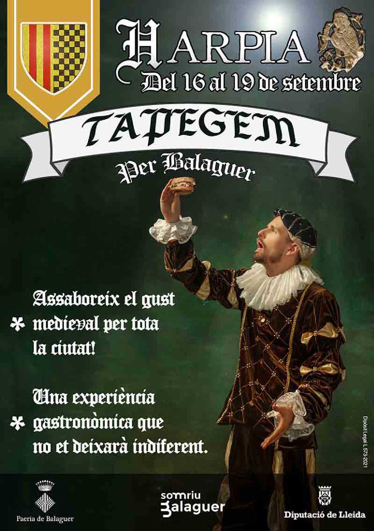 En el marc de la festa de l'Harpia, Balaguer Medieval, que es celebra aquest cap de setmana, enguany es farà l'activitat 'Tapegem per Balaguer'. Hi participaran una vintena de restaurants que elaboraran una tapa o un plat amb un 'gust medieval'