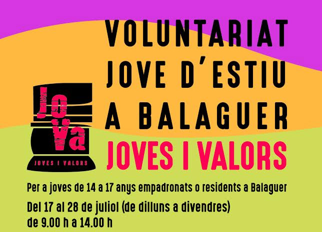 Balaguer destina el projecte JOVA, Joves i Valors, d'enguany a la neteja i millora del Barranc dels Rucs. El programa està obert a joves d'entre 14 i 17 anys i es durà a terme del 17 al 28 de juliol.