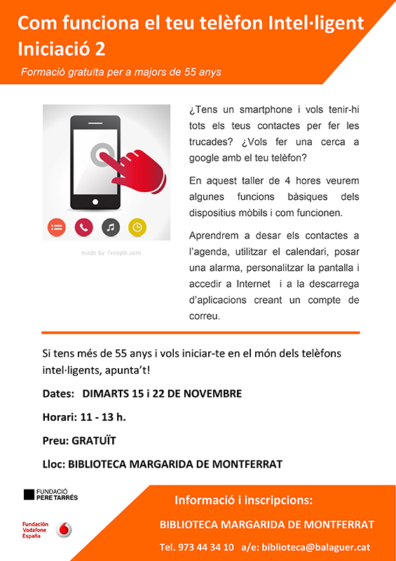 20 persones majors de 55 anys participen a la Biblioteca Margarida de Montferrat de Balaguer en el taller 'COM FUNCIONA EL TEU TELÈFON INTEL·LIGENT. INICIACIÓ 2'