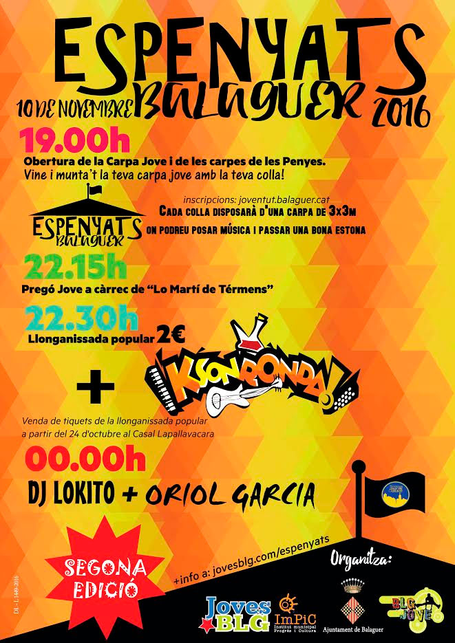 Balaguer celebrarà la 2a edició dels Espenyats en el marc de les Festes del Sant Crist. Es tracta d'una jornada lúdica i festiva adreçada a la gent jove i no tan jove de la ciutat agrupada en colles.