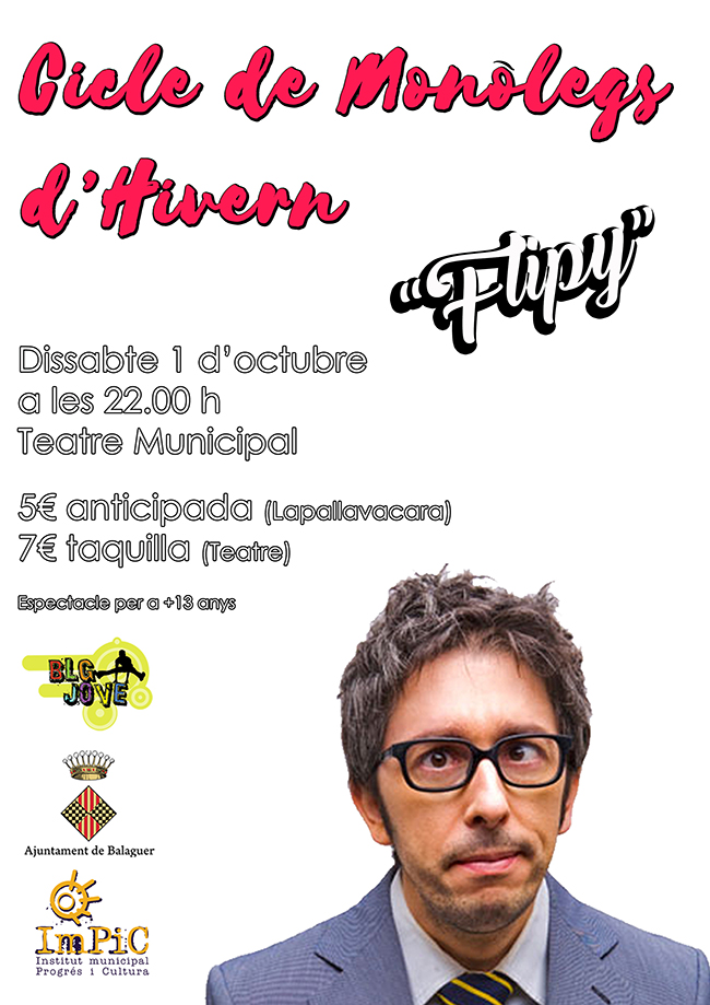Demà dissabte comença a Balaguer el cicle de monòlegs d'hivern. El popular Flipy actuarà al Teatre Municipal a les 22.00h