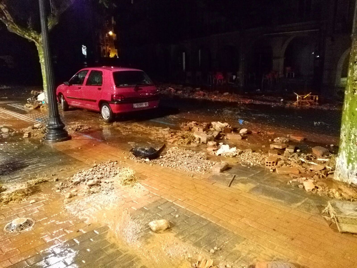 Balaguer continua avui avaluant els danys ocasionats per la pluja del passat divendres. La plaça del Mercadal i el seu entorn són les zones mes afectades i, entre els equipaments, un dels més danyats és la piscina coberta, que estarà tancada uns dies.