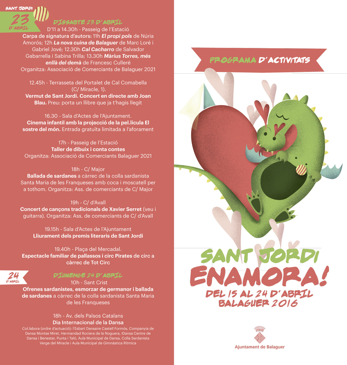 Balaguer inicia avui les activitats que la ciutat ha preparat per commemorar la Diada de Sant Jordi i que s'allargaran fins el dia 24.