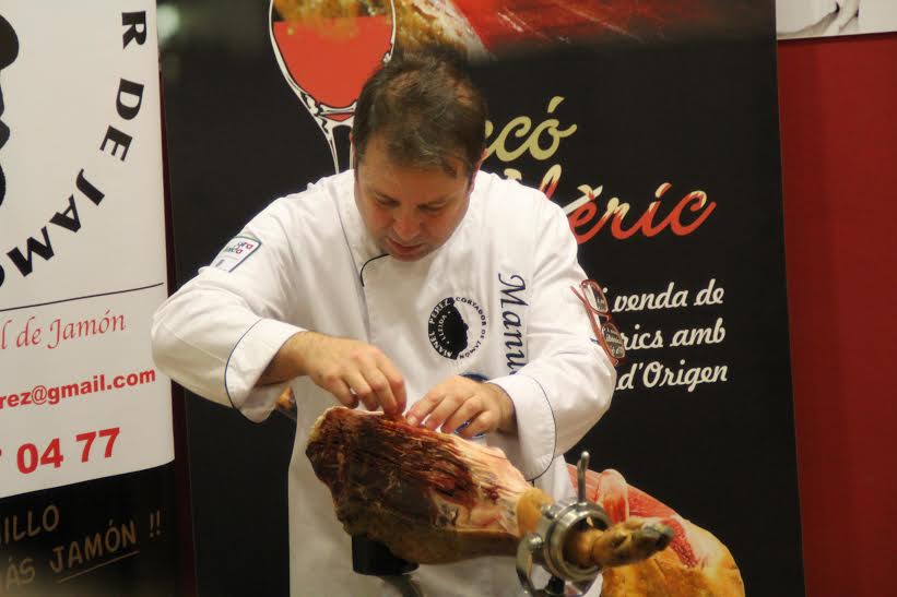 El mestre tallador de pernil, Manuel Pérez aconsegueix el repte Guinness de tallar un pernil i tornar-lo a recompondre.