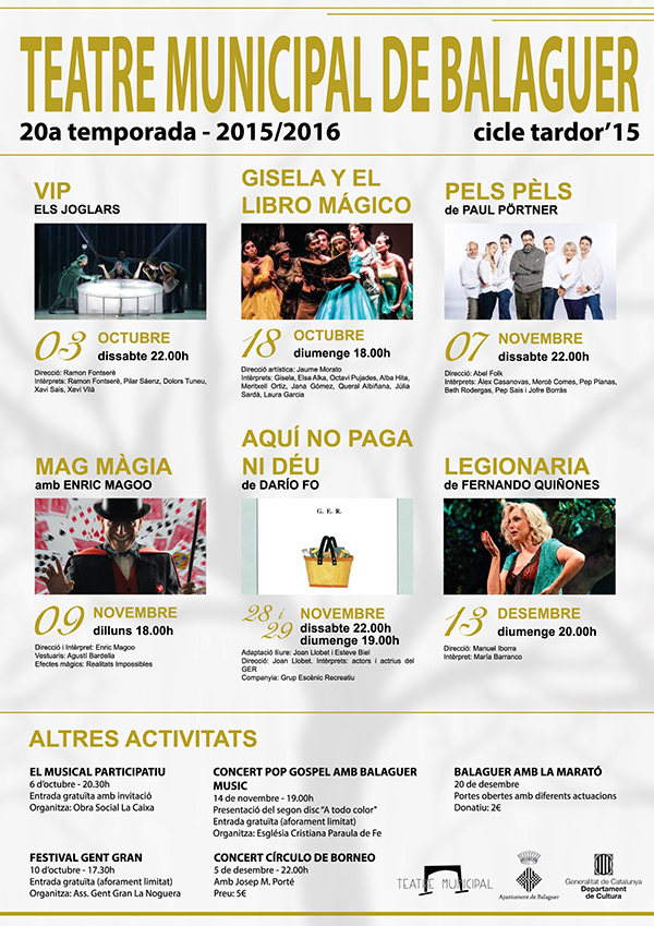 Amb l'obra VIP de Els Joglars el Teatre Municipal de Balaguer obrirà la temporada de tardor el proper 3 d'octubre