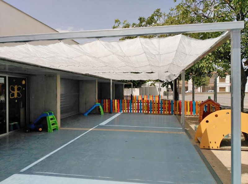 L'AMPA de la llar d'infants Els Putixenl·lis de Balaguer instal·la un tendal al pati de P1 per reduir els efectes de la calor en els nens i nenes.