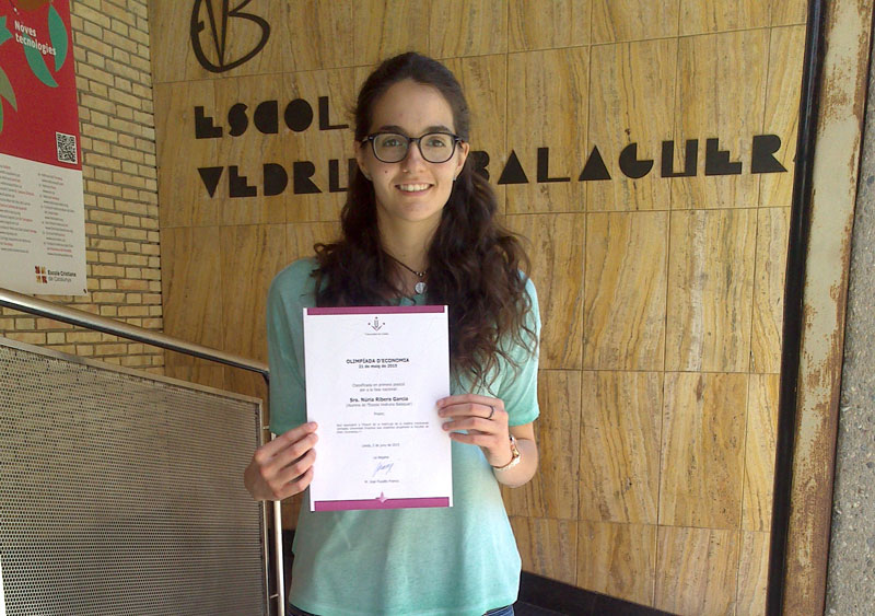 Núria Ribera García, alumna de segon de Batxillerat de l'Escola Vedruna Balaguer, guanya el primer premi de l'Olimpíada d'Economia, de la fase local.