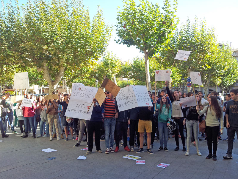Desenes d'alumnes de l'IES Ciutat de Balaguer es manifesten davant de l'ajuntament contra la LOMCE i també contra les retallades del govern del PP i de CiU.