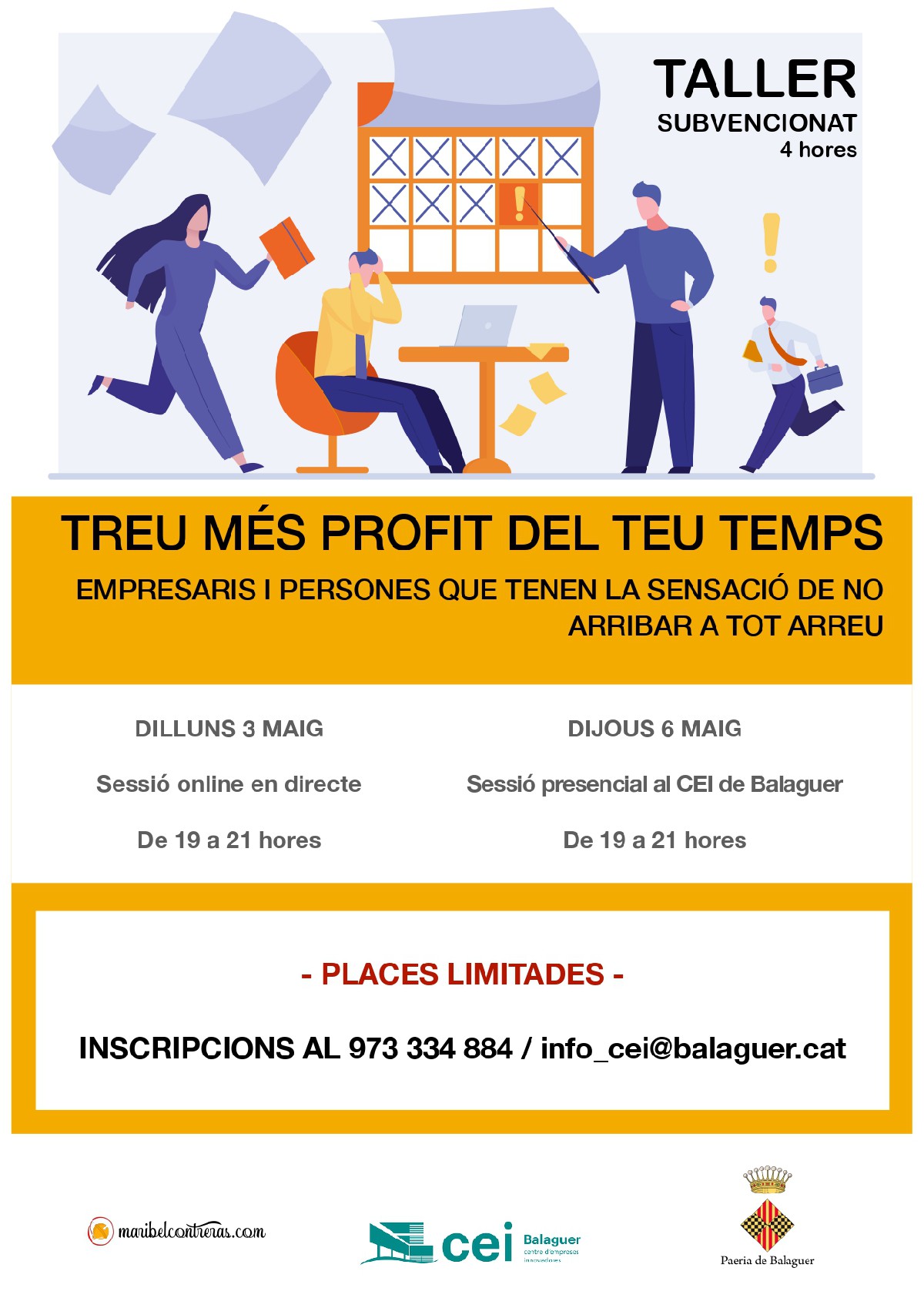El CEI Balaguer organitza dos cursos gratuïts: TREU MÉS PROFIT DEL TEU TEMPS I CURS D'HABILITATS DE COMUNICACIÓ ON-LINE