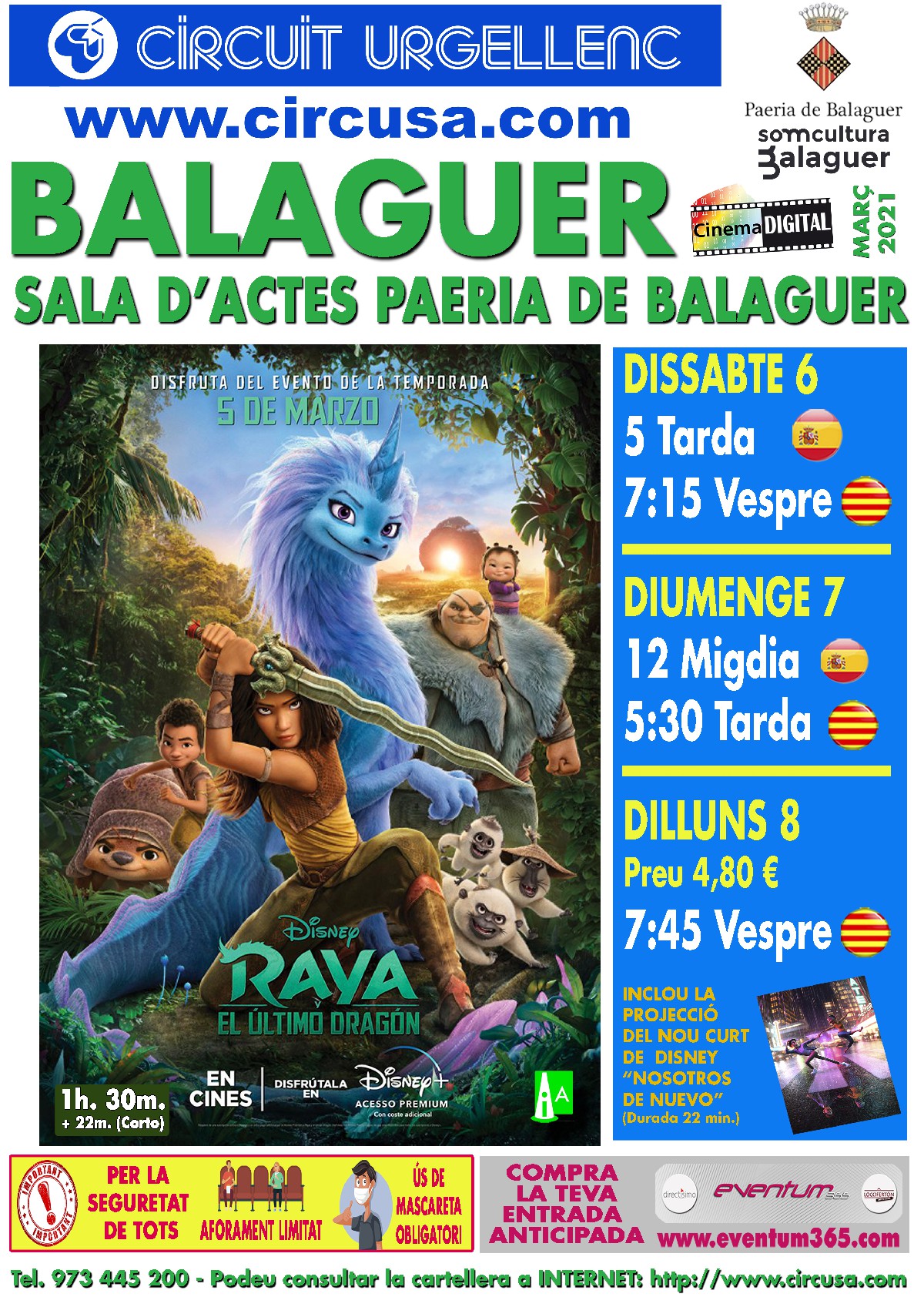 Aquest cap de setmana al Cinema Balaguer es podrà veure l'estrena de la pel·lícula de Disney, RAYA, EL ULTIMO DRAGÓN
