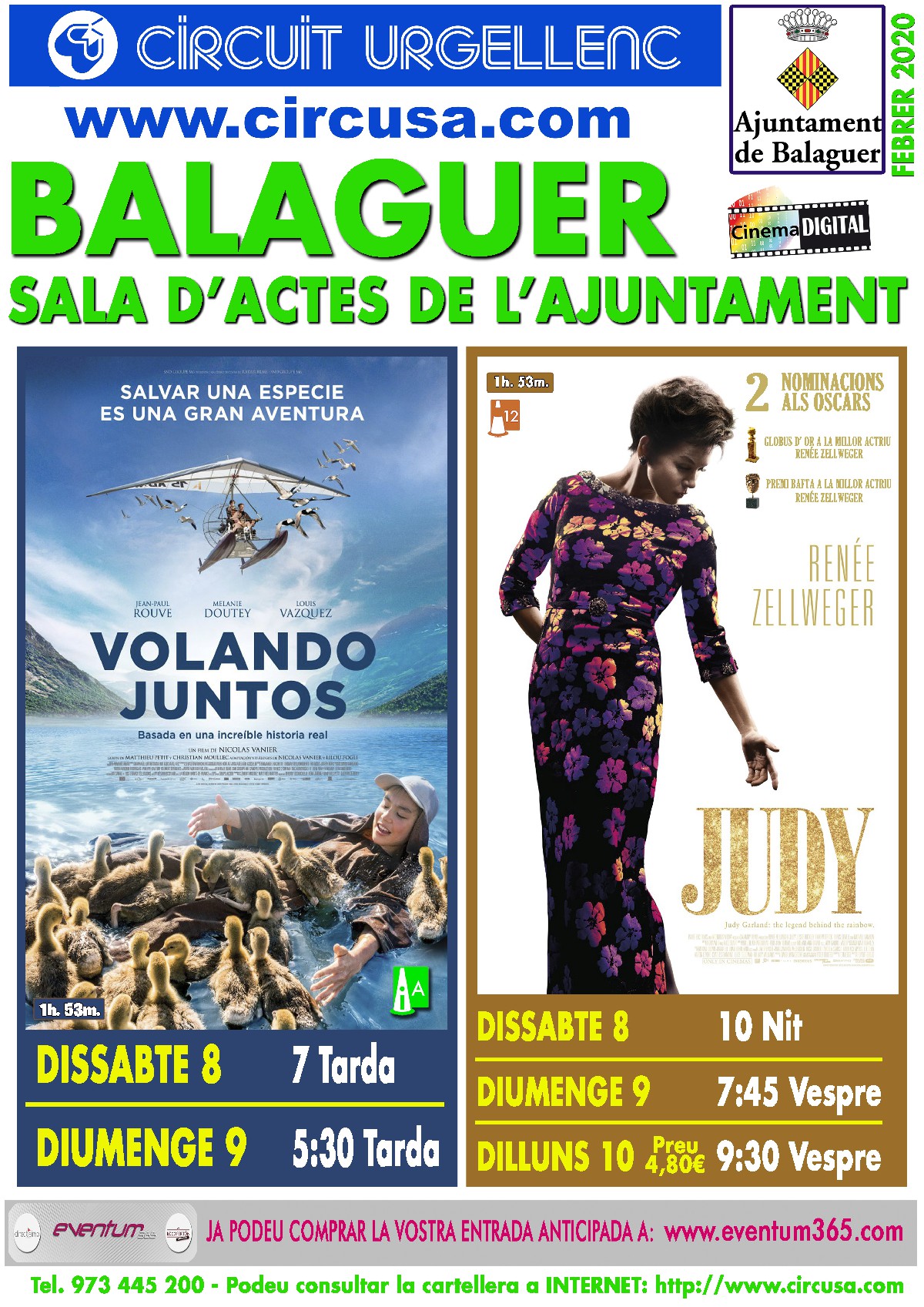 El Cinema Balaguer projectarà aquest cap de setmana dues noves pel·lícules; Volando Juntos i Judy.