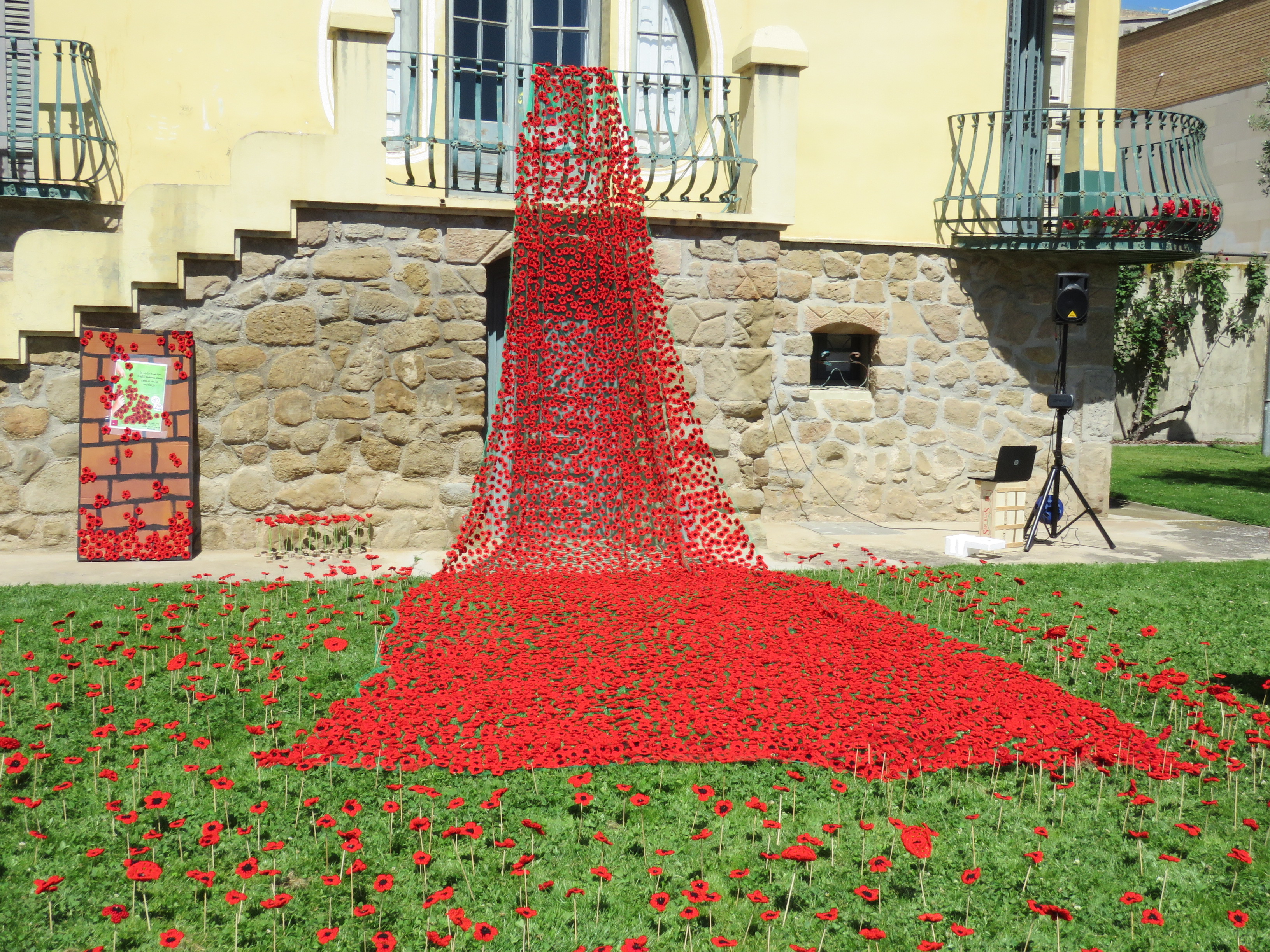 L'Associació l'Estel ha organitzat aquest dissabte una performance amb més d'un miler de roselles teixides a mà, per commemorar els 40 anys de l'Associació l'Estel i els 25 del Club Esportiu l'Estel.