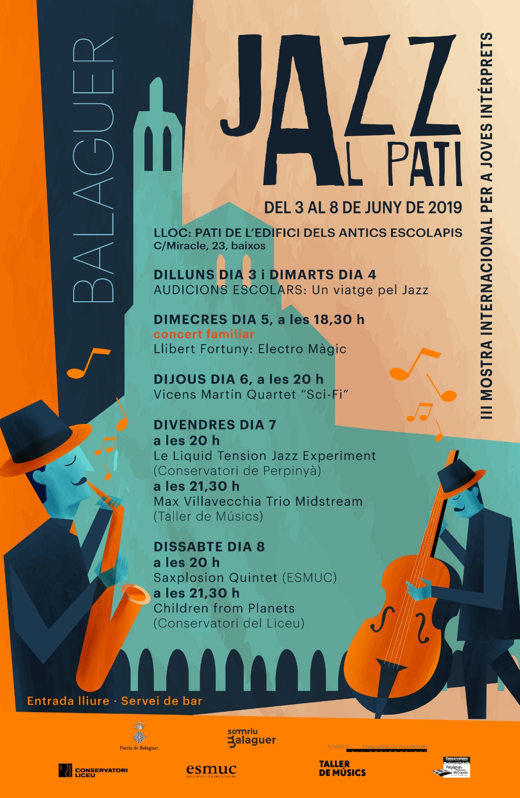 El guitarrista Vicens Martín ha actuat avui a Balaguer en el marc de la tercera edició de Jazz al pati, la mostra internacional per a joves intèrprets de jazz. Dimecres, el saxofonista Llibert Fortuny va oferir l'espectacle familiar Electro Màgic