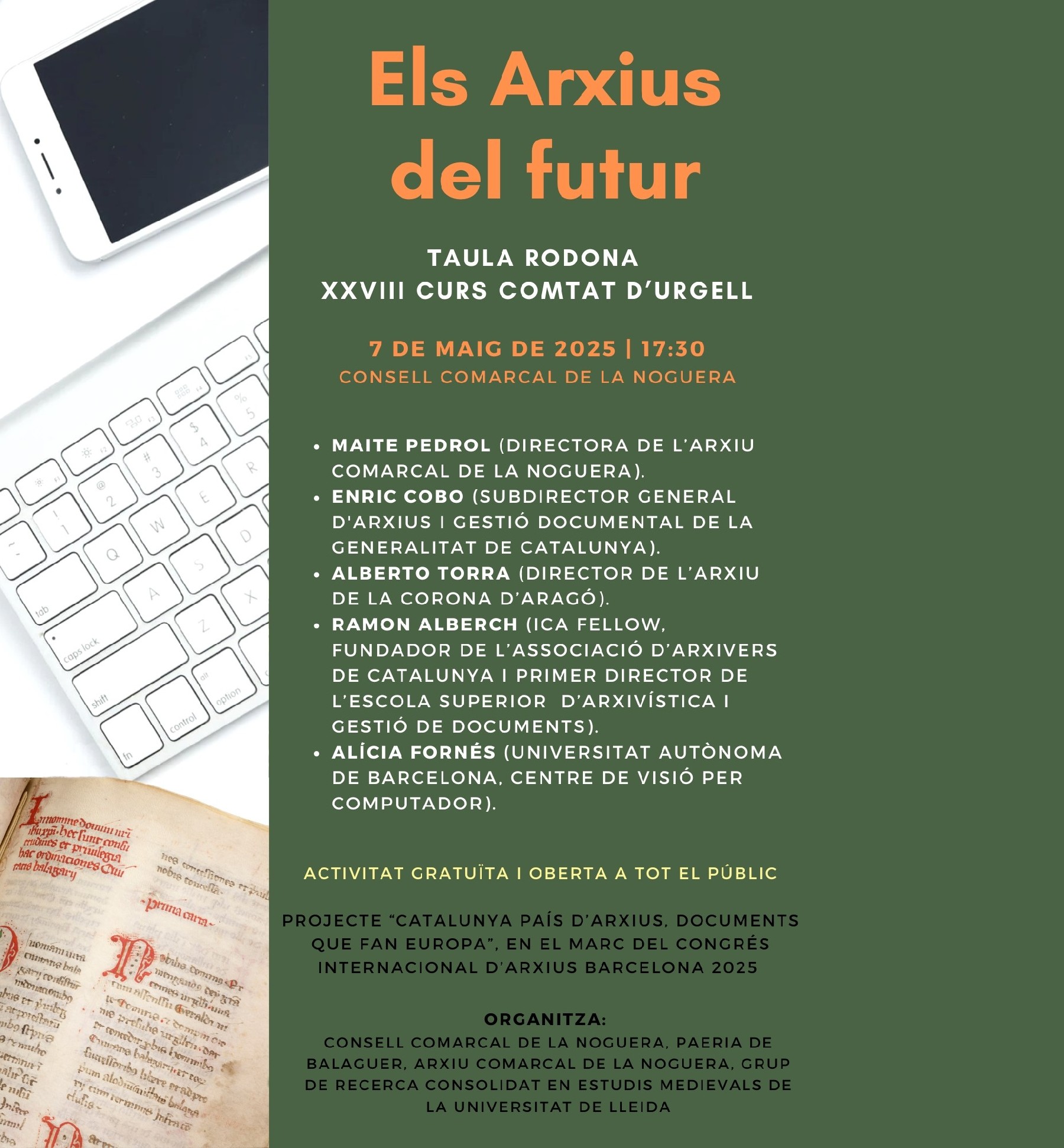 Aquest dimecres en el marc de la Càtedra d'Estudis Medievals, tindrà lloc a les 17:30h al Consell Comarcal de la Noguera la taula rodona 'Els arxius del futur'