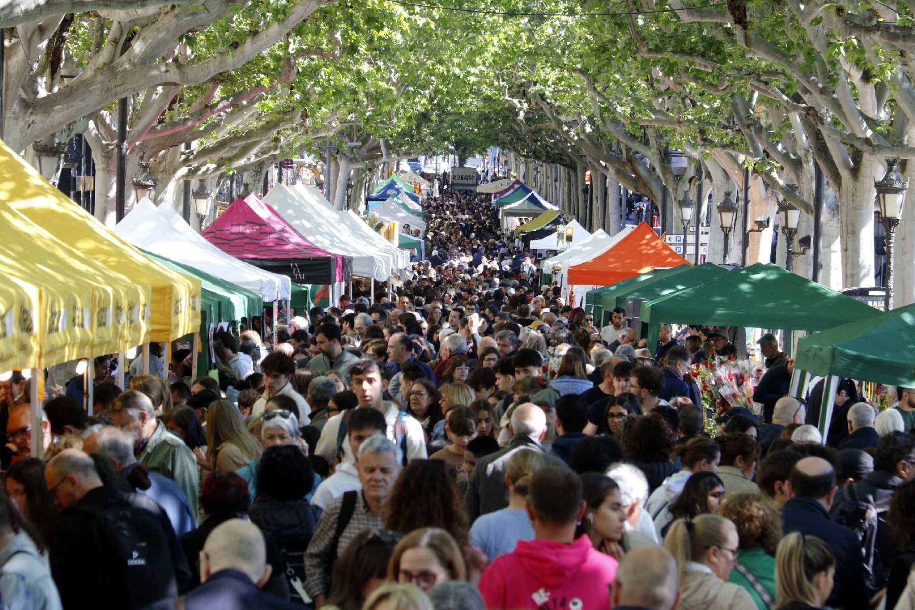 Lleida es bolca amb la diada de Sant Jordi i omple la rambla de gom a gom a la recerca del llibre i la rosa. El bon temps dispara l'optimisme de floristes i llibreters, en un any amb més de 200 parades autoritzades al carrer