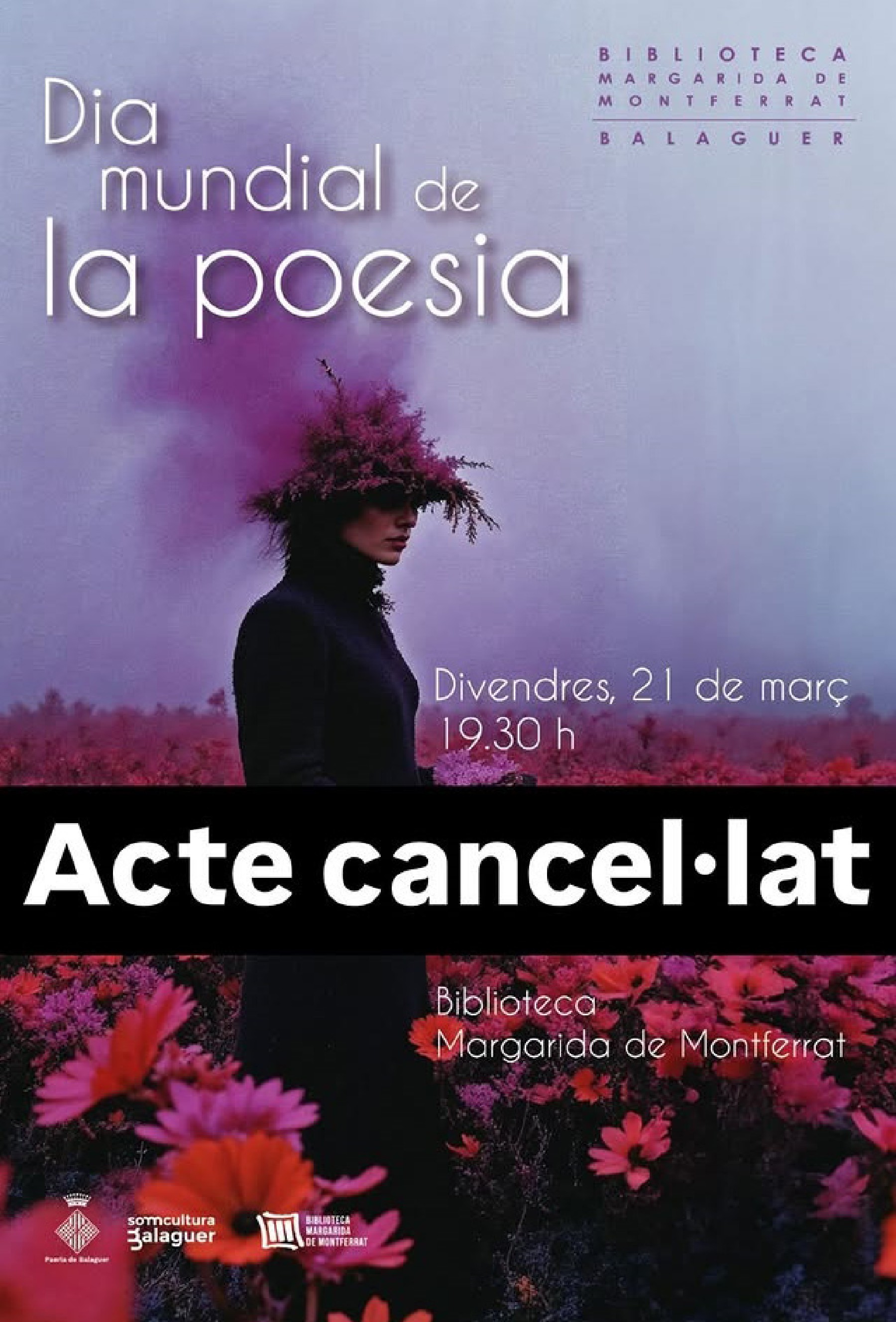 La Biblioteca Municipal de Balaguer ha cancel·lat l'espectacle La poesia va a la font' previst per aquest divendres per commemorar el Dia Mundial de la Poesia