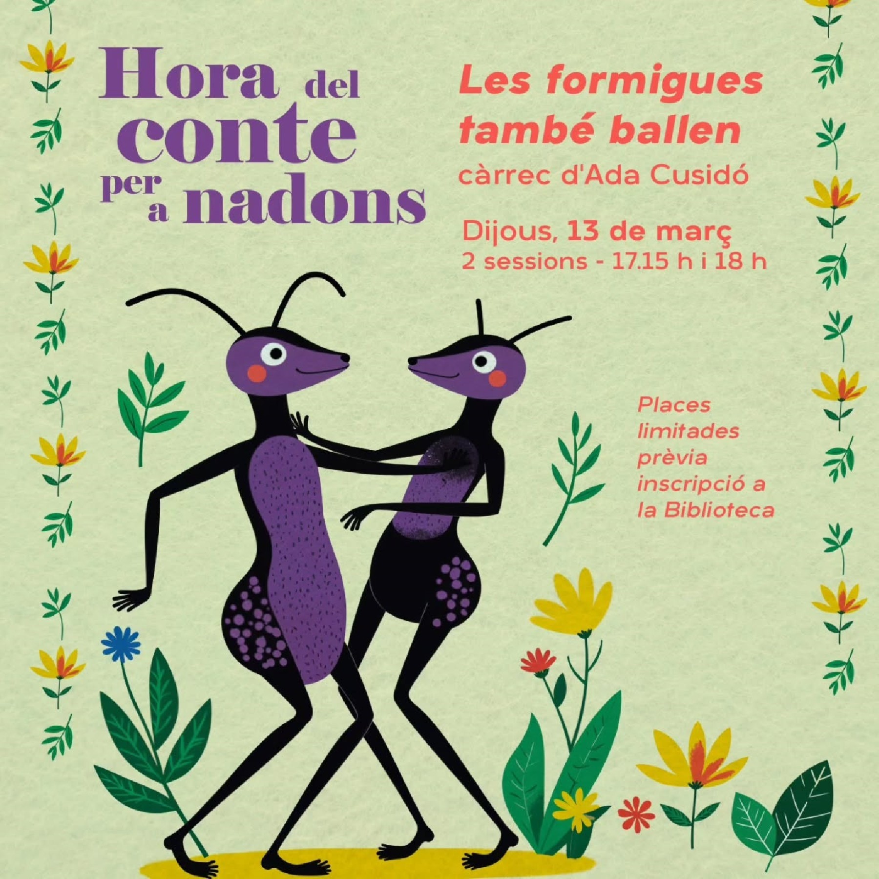 El dijous dia 13 de març té lloc a la Biblioteca Municipal l'Hora del conte per a nadons amb 'Les formigues també ballen' d'Ada Cusidó