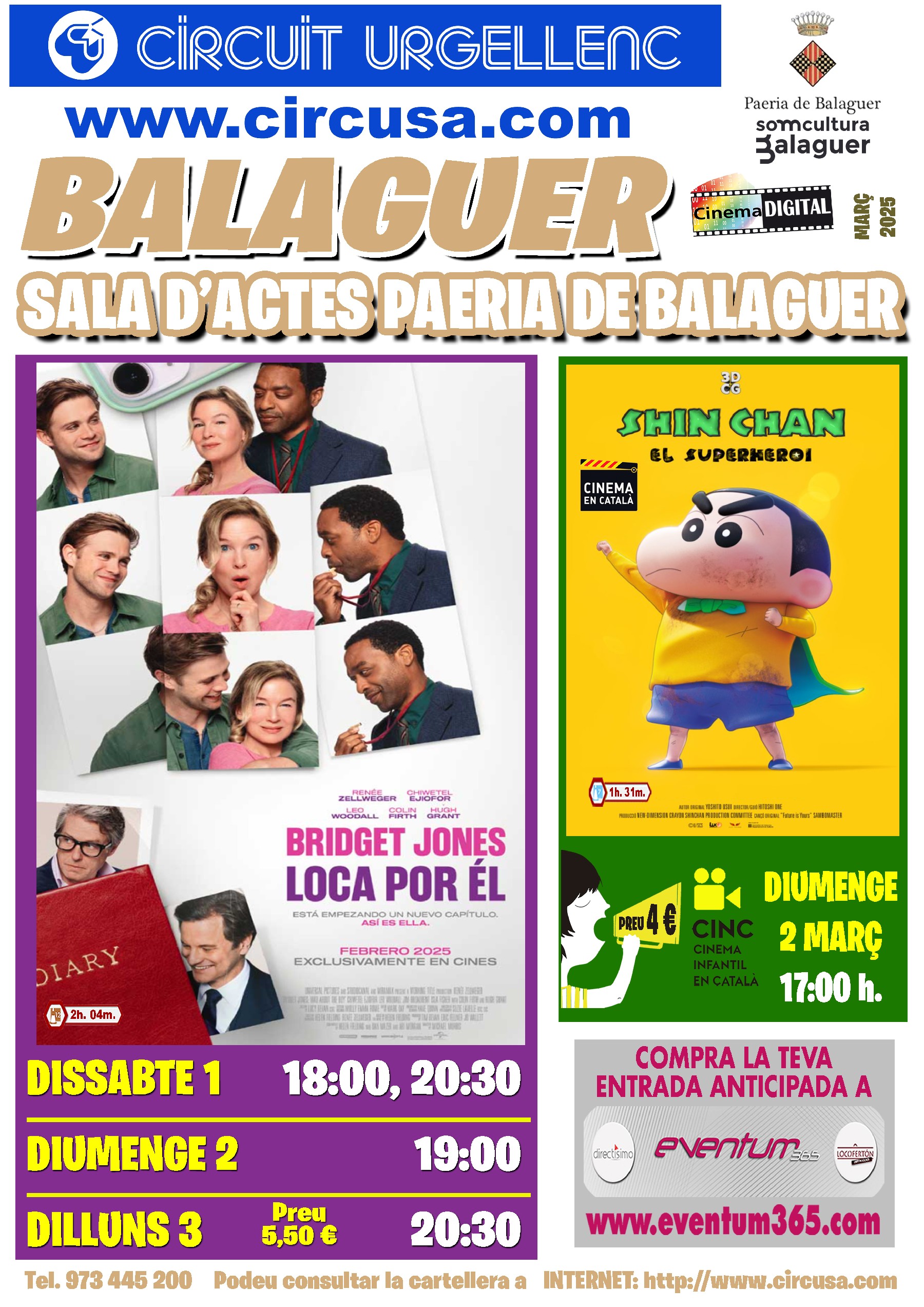 Arriben al Cinema Balaguer les projeccions de les pel·lícules BRIDGET JONES, LOCA POR ÉL i també SHIN CHAN, EL SUPERHEROI